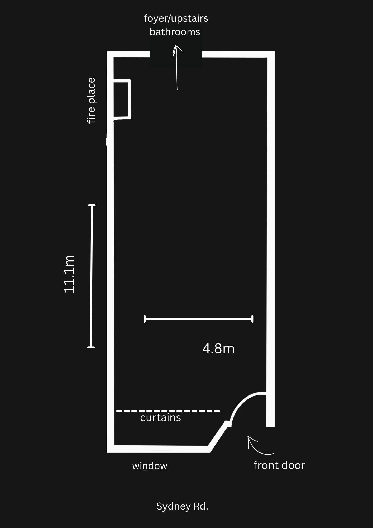 Floor plan: 11.1 x 4.8 metres